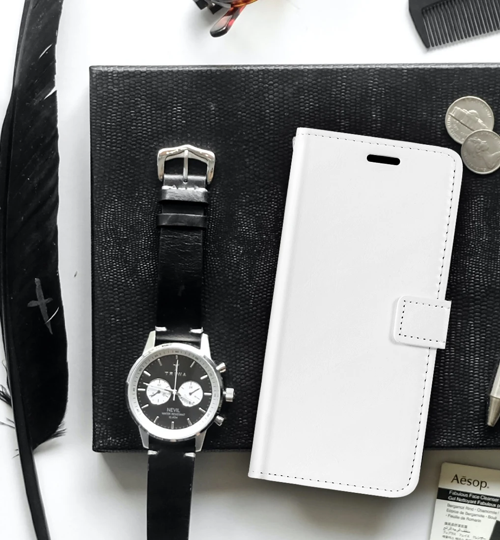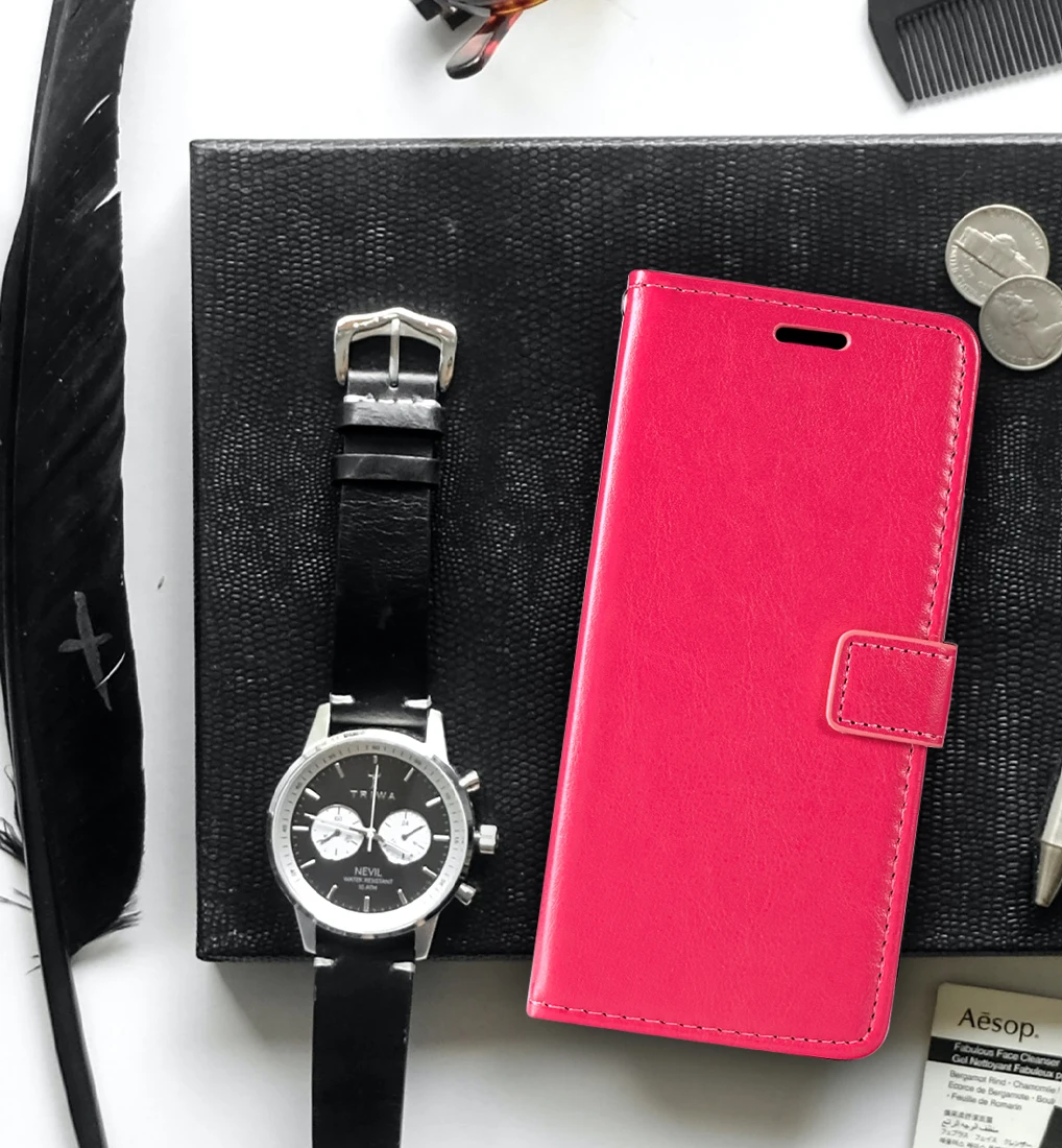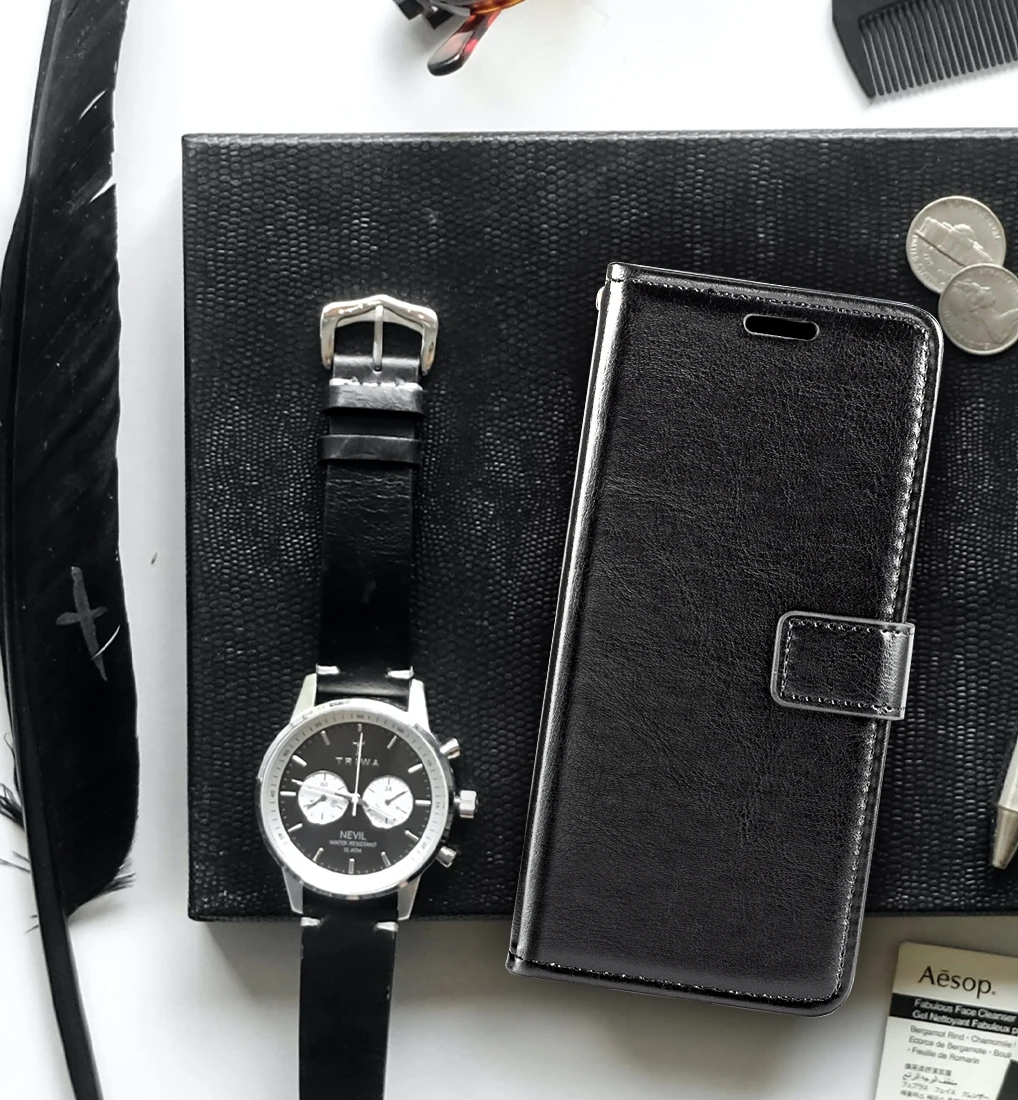 3. Funkcija denarnice in stojalo za gledanje - etui za denarnico vsebuje tri reže za kartice in predal za denar, ki vam omogoča, da greste ven, ne da bi morali nositi obsežne denarnice. Preklopna torbica s funkcijo preklopa omogoča vodoravno gledanje zaslona. Poleg tega lahko poljubno prilagodite kot, da poiščete najboljšo perspektivo. Popoln za video klice ali gledanje filmov.