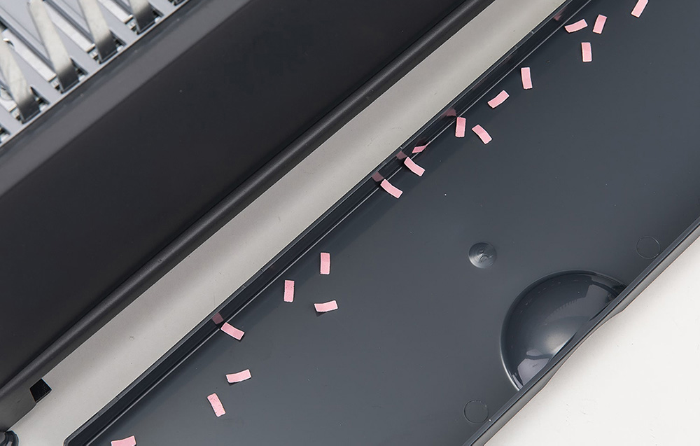 Stroj za vezenje je bil zasnovan tako, da vam omogoča kar največje udobje pri uporabi. Zaradi skrbno premišljene zasnove luknjanje papirja ne zahteva veliko truda. Naprava je bila opremljena tudi z veliko posodo za odpadke, kar pomeni, da vam ni treba skrbeti za nered v delovnem prostoru.
