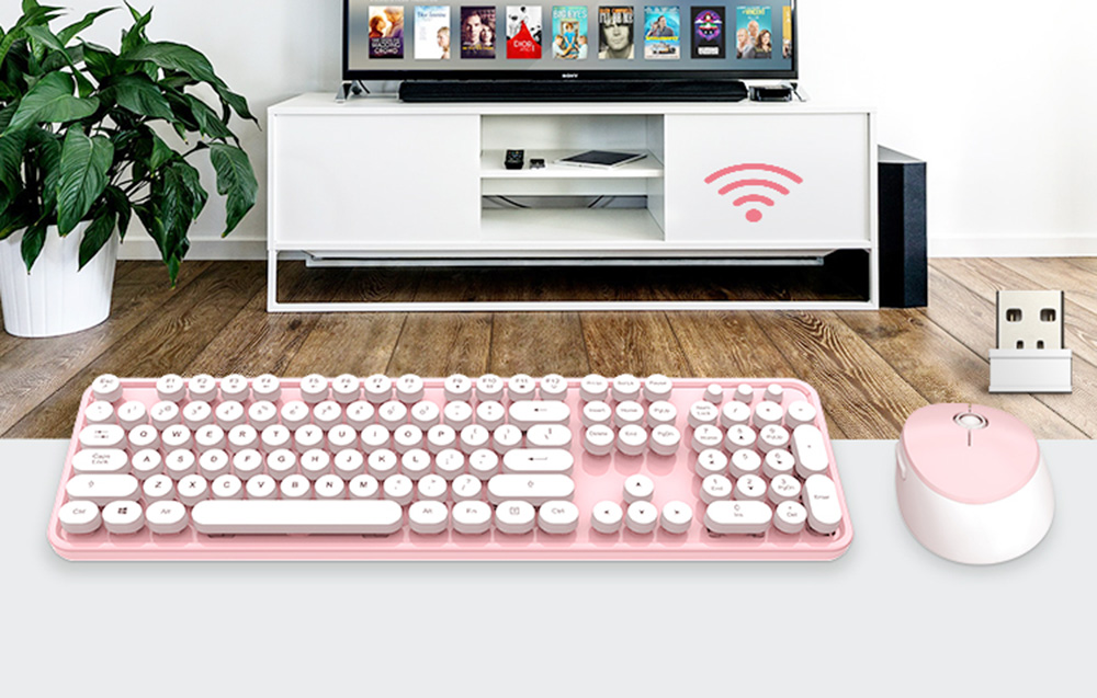 Komplet brezžične tipkovnice in miške MOFII Sweet 2.4G (belo-rožnata)