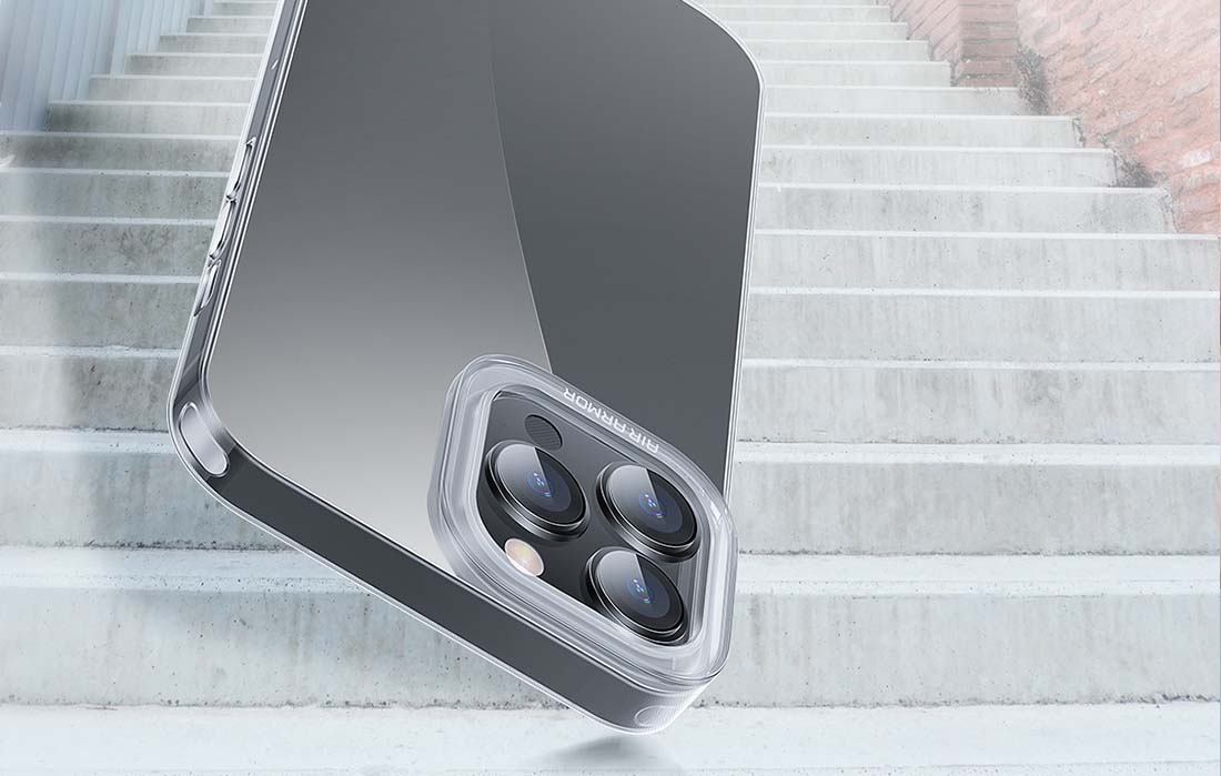 Ovitek je izdelan iz trpežnega materiala TPU, zato učinkovito ščiti vaš pametni telefon pred poškodbami zaradi padcev ali udarcev. Odlikuje ga tudi odpornost na udarce. Temeljito ščiti vse vogale telefona iPhone 13 Pro in njegove objektive.